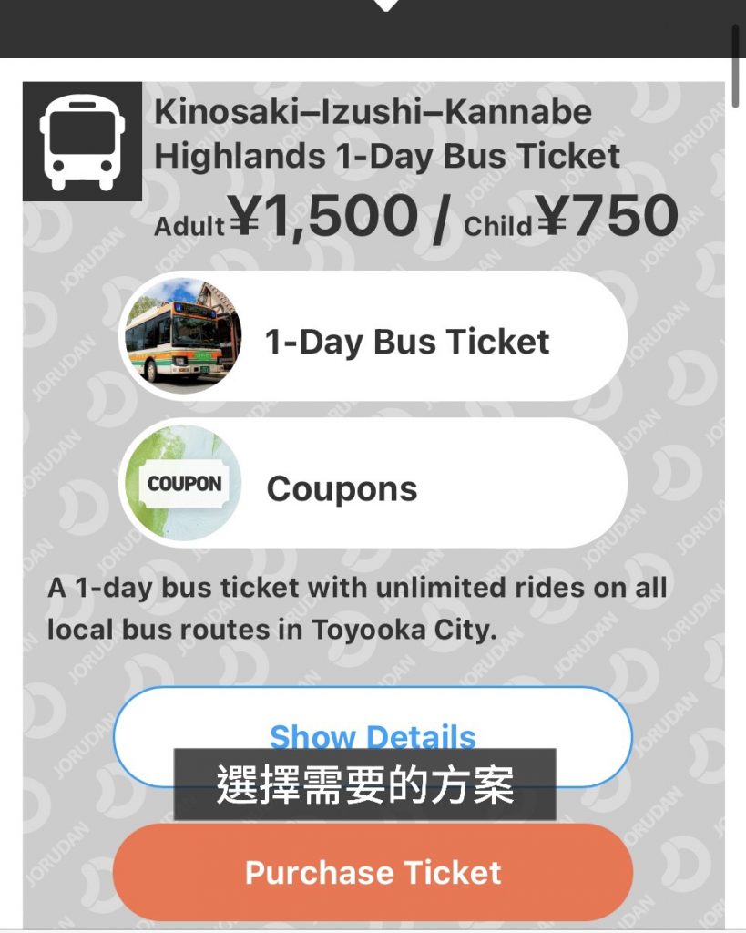 • 2.於票券頁面選擇對應的全但巴士乘車券